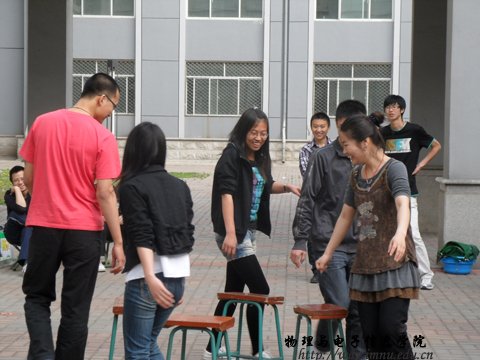 5月15日下午我院09级物理学汉班在田楼西侧空地处举办了“班级宿舍文化系列主题活动月”之趣味运动会。具体的比赛项目有:丛林奔跑、旱地过河、仙人指路、抢凳子。同学们积极参加,热情高涨,现场气氛也非常地活跃,活动中时时传来大家阵阵的掌声和欢呼声,活动结束班委会为获奖宿舍及个人颁奖。通过这次活动充分地展示了同学们的集体精神面貌,展现了班级的团结协作精神。