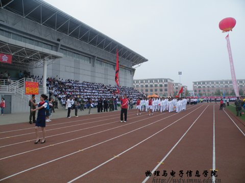 我校巡视员王希明致开幕辞,他指出,体育工作是学校教育事业的重要组成部分,发展体育事业,增强人民体质,是全面建设小康社会,促进人的全面发展的必然要求。进一步加强大学生体育工作、增强大学生体质,对于全面落实科学发展观,深入贯彻党的教育方针,大力推进素质教育,培养中国特色社会主义事业的合格建设者和接班人,都具有十分重要的意义。本届运动会不仅是我校大学生体育运动水平的一次大展示,也是对师生精神面貌的一次大检阅,同时更是学校今后承担高水平竞技体育赛事的一次大练兵,必将进一步促进全校群众性体育运动的蓬勃开展。他希望全体运动员、教练员、裁判员和工作人员,要严格遵守竞赛规则,认真履行职责和义务,秉承重在参与、锻炼身体、增强体魄的宗旨,发扬顽强拼搏、永争第一的精神,在赛场上团结合作,尊重裁判,超越自我,不断创造优异的成绩。