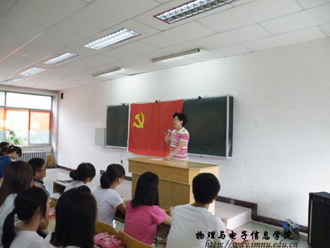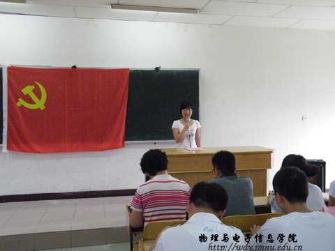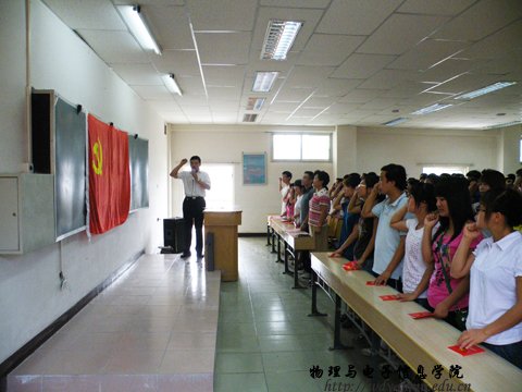 大会在庄严的《国歌》声中开始,176名新党员面向党旗肃立,表达了对中国共产党的崇高敬意。全体新党员面对党旗庄严宣誓,表达了自己将认真履行党员义务以及为共产主义奋斗终身的决心!随后,老党员为新党发放了中国共产党党章;07物理汉班隋文燕、07电子信息工程1班大红同志代表新老党员分别做了发言。