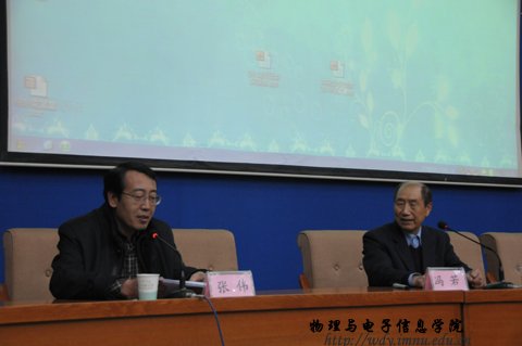 冯若教授结合自己的研究专长并以大量而又丰富的资料做了题为《现代超生医学及现代超声化学前沿》的专题报告。冯教授从物理分支—声学讲起,围绕超声技术、超声技术的应用以及超声化学的前沿三方面进行了讲述。随后,丁立业教授以《高压科学与技术简介》为题阐述了高压科学与技术的发展及应用。会上,冯若教授、丁立业教授和现场师生进行了互动交流。会后,学院领导陪同参观了功能材料物理与化学自治区重点实验室。