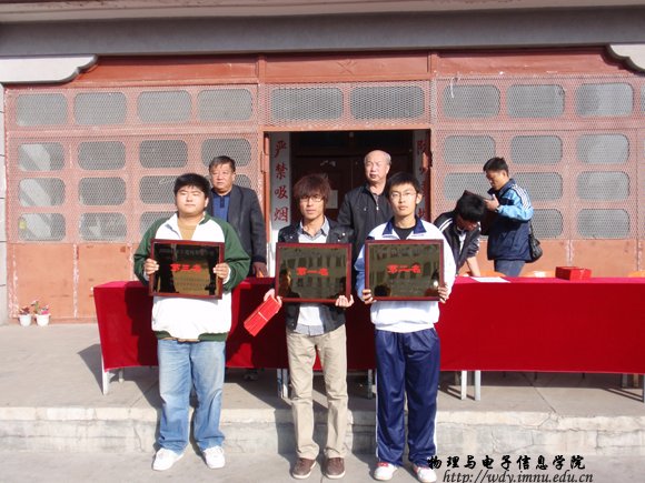 10月25日上午,在东操场校足球、篮球赛获奖学院颁奖典礼上,我院成绩优异,在校足球赛中获第三名,在校篮球赛中男、女子组均获得第一名。全院师生为之同庆。