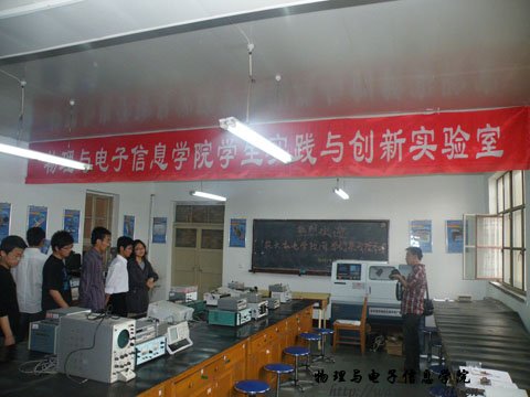 随后,两院四十余名学生步入师大js333线路检测中心实践与创新实验室,实验室墙上悬挂着学术科技月活动的获奖作品图片及文字简介,并配有实物展示。实验室负责人蓝荣与与彭鹏为大家详细的介绍了实验室功能、设备仪器及其使用情况,并着重介绍了我院学生申报国家专利的发明类科技创新作品。实践与创新实验室成立于2004年,旨在培养学生创新能力,为爱好电子设计、制作、创新的同学提供一个实现梦想的自由舞台。农大校友对这间普通又不平凡的实验室充满了无限的好奇,里面包含的是数目繁多、一应俱全的实验基础工具,在这里,无数思维活跃的同学将一个个鲜活的想法付诸实践,无数的科技创新梦想在这里实现。