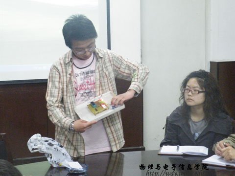 下午4时,学生会在院会议室召开了主题为“发明直通专利,大学生实践创新”的欢迎会。我院学生会社团部部长包文君主持会议,会上,2005级电子信息工程班崔晓宇与张帅分别介绍了他们在08年学术科技文化月活动中获奖的作品:《多点温度控制技术》与《全自动洗衣机的自动控制》。农大机电学院曾多次申报成功国家专利的王懋同学也就自己的发明经历及对发明与申报专利的细节做了详细的介绍,双方同学也就各自的疑问进行了讨论,现场气氛十分热烈。在这里没有校际间的区别,没有院系间的区别,联系你我的只有对知识的渴望,对创新的灵感。最后我院学生会主席赵佳哲对未来两校间的学生科技创新活动提出了长久联系的期望,她希望我们在知识的指引下共同走向成功的明天。会后两校的同学交换了电话,以便将来在合作方面相互帮助。