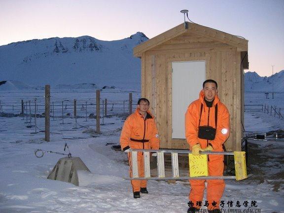 根据《2008年北极黄河站科学考察现场实施计划》,本次赴北极科考的项目名称为:“中国北极黄河站电离层观测(常规观测项目)”( Ionospheric observation at Chinese Arctic Yellow River station)。依托课题为国家自然科学基金重点项目:地球极隙区的电离层踪迹及其动力学过程研究,中国极地科学战略基金项目“极区电离层闪烁与不规则体特性研究”;其他项目:极区电离层闪烁特性研究。项目承担单位分别为中国极地研究中心、中国电波传播研究所、中科院地质与地球物理研究所。现场执行人共7人,其中,中国极地研究中心3人: 黄德宏、韩德胜(js333线路检测中心96届毕业生,现为中国极地研究中心副研究员,js333线路检测中心兼职硕士生导师)、陈卓天;内蒙古师范大学1人:刘建军(js333线路检测中心2006级凝聚态专业硕士研究生);中国电波传播研究所2人:何绍林、袁亚平;中科院地质与地球物理研究所1人:宁百齐。