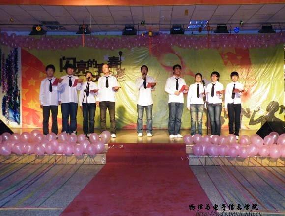 本次晚会中节目样式多,质量高,准备充分,编排合理.英文歌演唱,蒙文诗朗诵,萨克斯独奏等精彩纷成的节目充分展现了当代大学生蓬勃的朝气与多才多艺.晚会赞助单位明亮眼镜公司包经理来到了晚会现场并参加了抽奖活动的颁奖仪式.