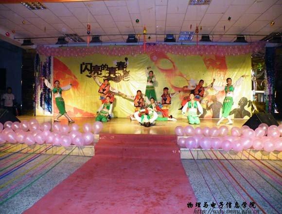 10月11日晚7点,我院精心筹备的以“闪亮的青春”为主题的“明亮之夜”js333线路检测中心迎新晚会在学校餐厅三楼大学生活动中心隆重举行.学院党总支书记阿梅,学院党总支副书记兼副院长辛智俊,团总支书记何小龙,学工办副主任张伟以及08科技班班主任克伦、08汉班班主任孙咏萍出席了晚会现场,与08级新生共度了一个美好的夜晚。