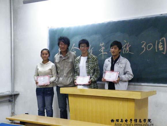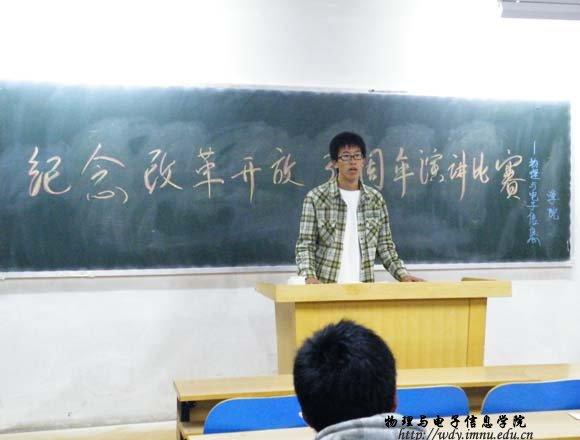 我院于10月18日晚在田家炳教育书院126室胜利举办以纪念改革开放三十周年为主题的演讲比赛,比赛分为蒙生和汉生两场比赛。参赛选手准备充分,慷慨激昂的演讲阐释了对改革开放的认识,并赢得了观众的阵阵掌声。该演讲比赛在锻炼同学们口才的同时,也加深同学们了对改革开放三十周年的理解。