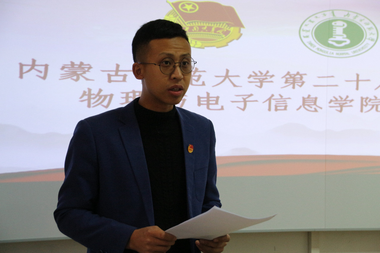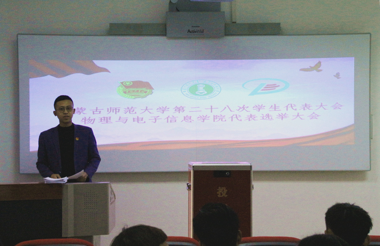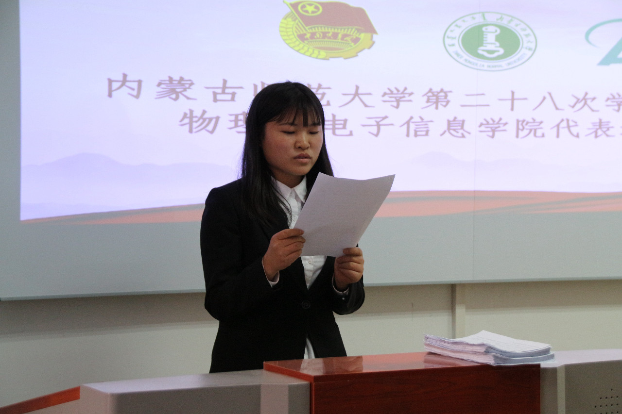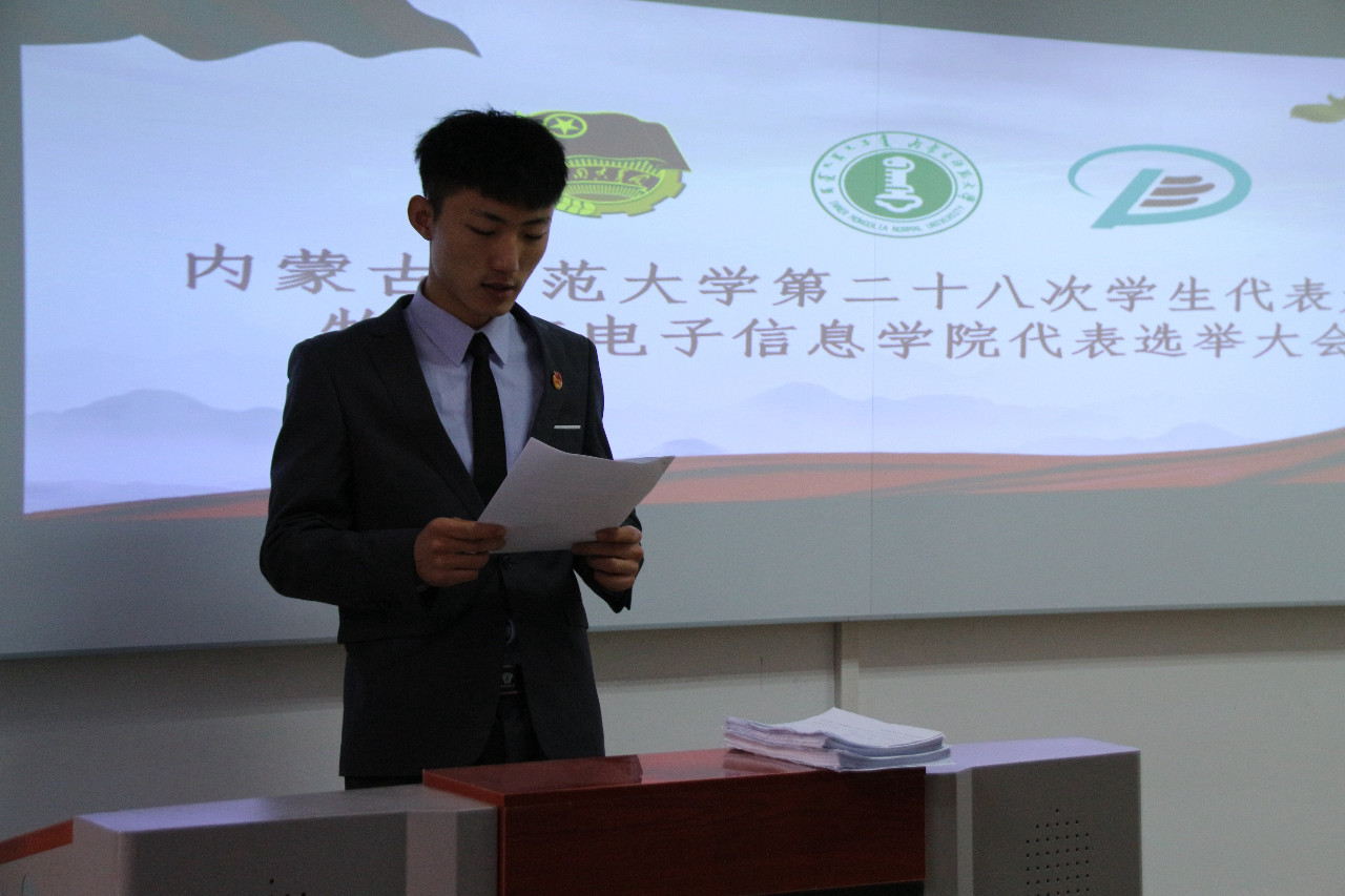 靖剑涛同学宣读《内蒙古师范大学第二十八次学生代表大会代表选举办法》。