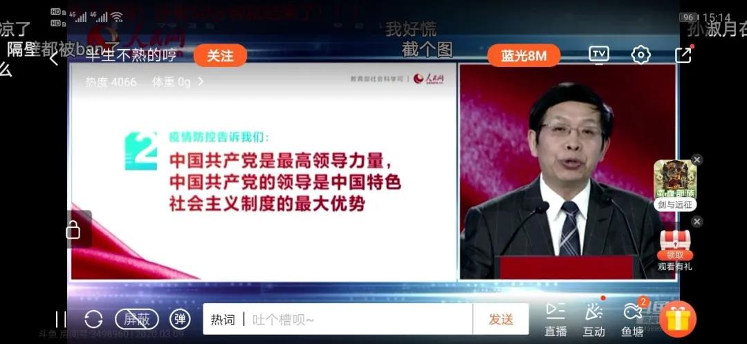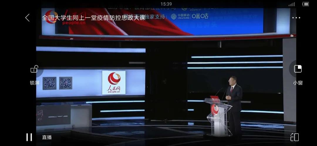 为将高校思政课教学优势转化为防疫斗争的强大力量,教育部社会科学司、人民网将联合举办“全国大学生同上一堂疫情防控思政大课”。3月9日14:30至16:00,我院师生准时在各平台收看思政大课。