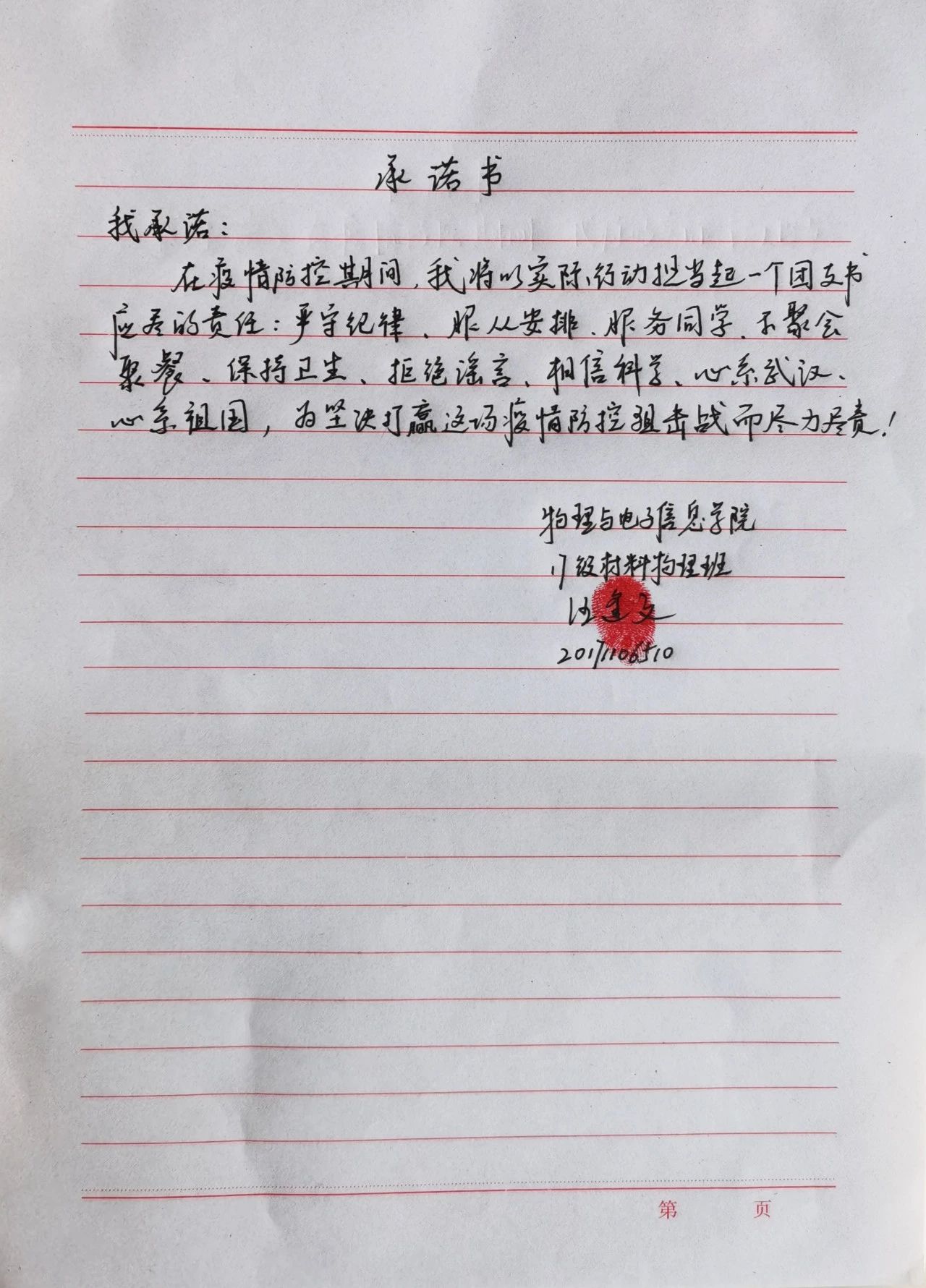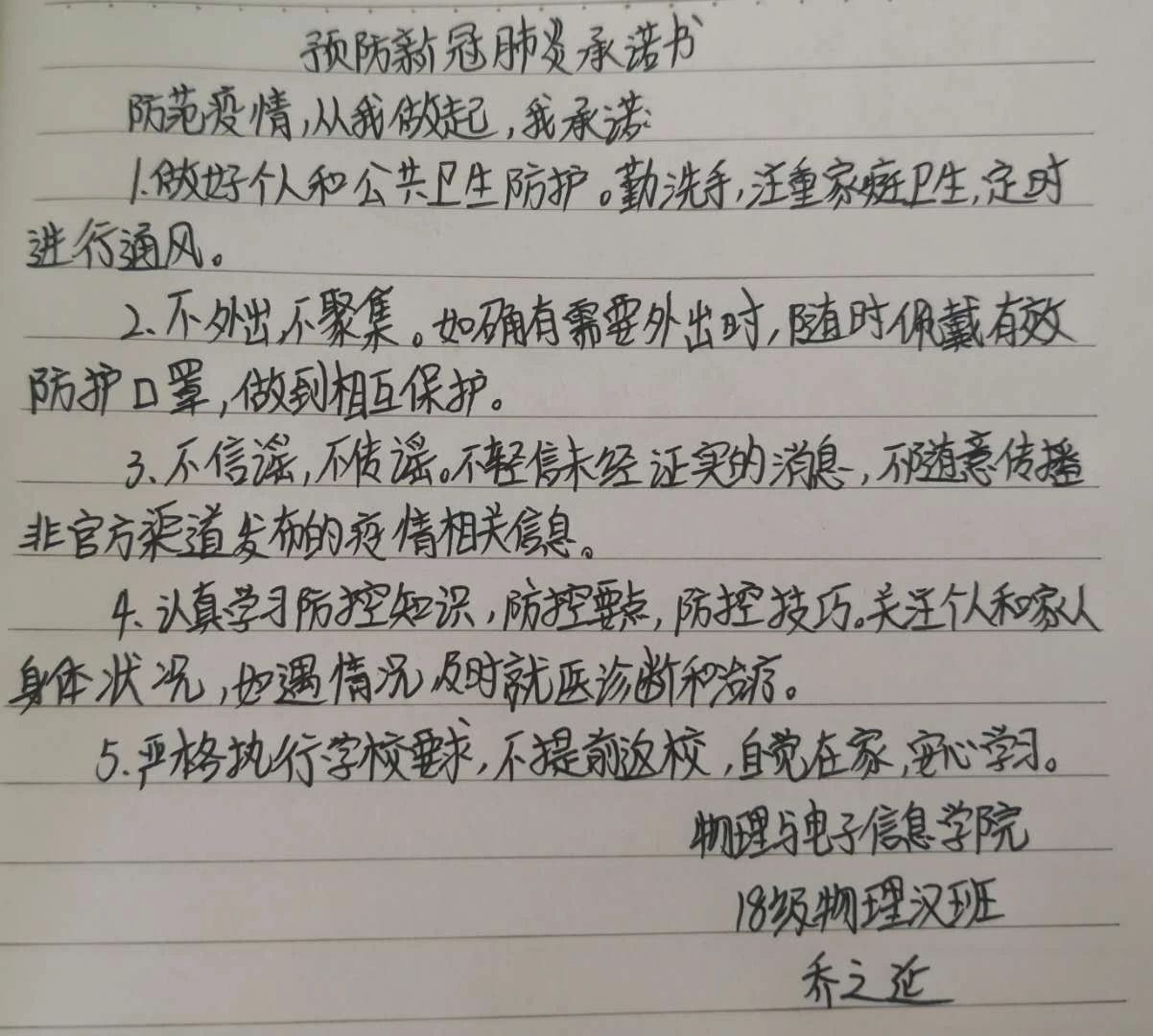 疫情发展始终牵动着全国人民的心,在前方,有时刻冲在第一线,与病魔争夺生命的医护人员,在后方,也应当有我们众志成城,共克时艰的守望相助。疫情面前显担当,越是艰难越向前。在此,js333线路检测中心学子承诺,我们将以以更高的标准、更严的要求作出表率,服从指挥、恪尽职守,加强防护,确保自身安全,时刻响应号召。