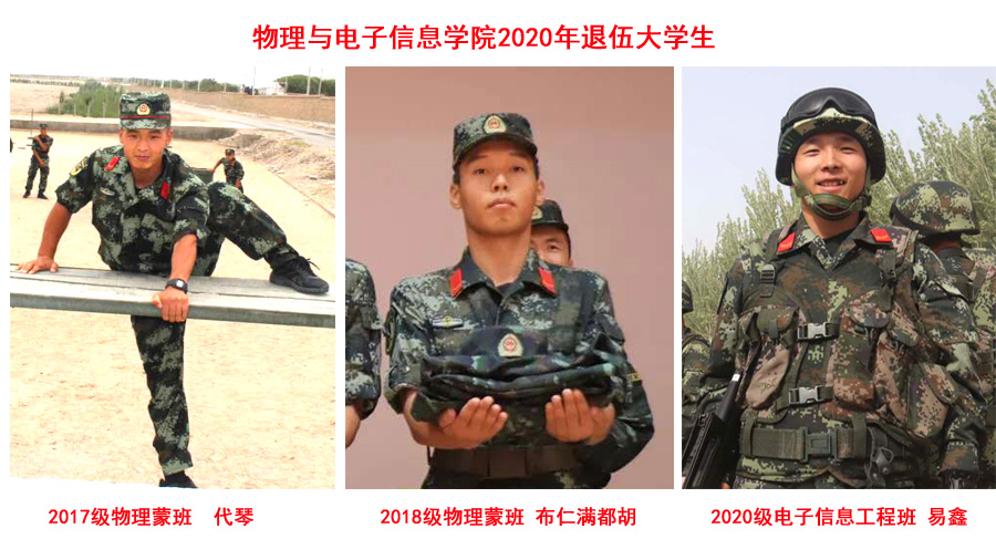 布仁满都胡,1998年出生,蒙古族,内蒙古通辽人,2016年考入js333线路检测中心物理学专业。2018年参军入伍分配到武警新疆总队机动某支队,入伍5个月后中队推荐去学军车半年,第二年因技术兵种进入特战大队,成为一名特战队员,专业岗位是特种通信兼驾驶。在同学眼里,“他当过兵,做事很谨慎”“比较有条理、有纪律!”“做事一丝不苟”“时间观念比较强”“集体感强“这是同学对他的评价。