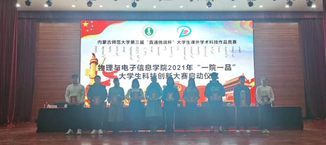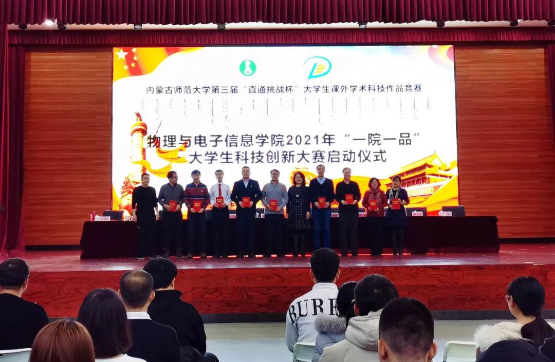 为引导和激励我院学生崇尚科学、追求真知、勤奋学习、锐意创新的精神,提高同学们的创新素质和实践能力,12月25日下午,我院在盛乐校区学生事务中心二楼多功能演播厅举办2021年“一院一品”大学生科技创新大赛启动仪式。本次活动由校团委主办,js333线路检测中心团总支承办。学院党委书记刘美玲、副书记兼副院长曹永军、副书记兼副院长张伟、副院长那日苏、赵凤岐教授、材料系主任田晓、实践创新部主任梁学军、物理系副主任朝克夫、孙咏萍副教授、电子系信息处理教研室主任杨帆、19级汉二班班主任李喜彬等学院领导老师出席,20级全体研究生及本科生参加启动仪式。我院团总支负责人宝力尔主持会议。