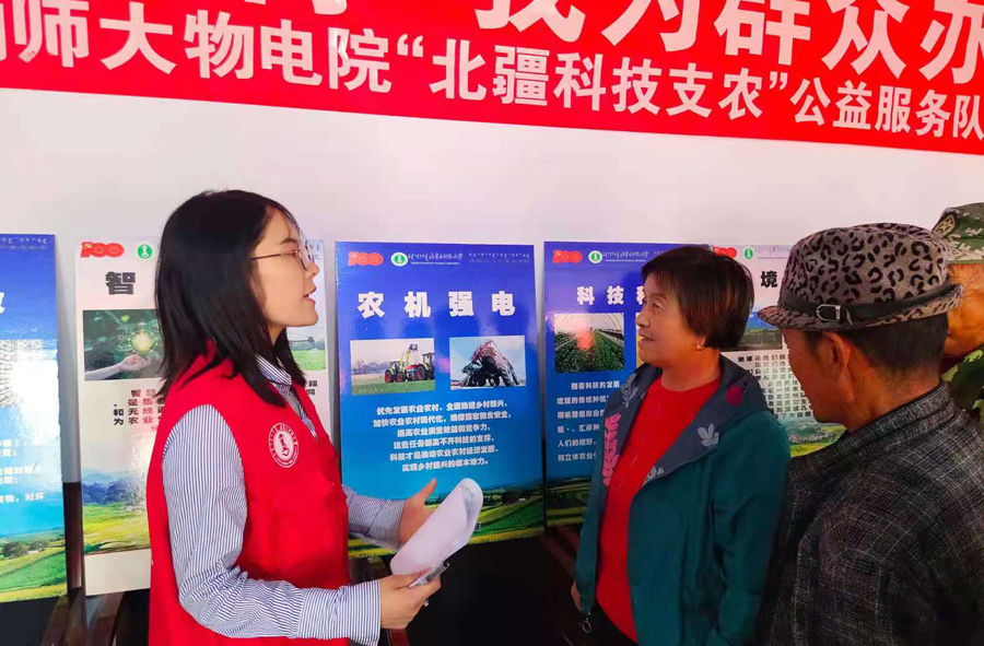 “北疆科技支农”公益服务队源于1992年成立的内师大物理系无线电小组,旨在通过深入农村进行家电义务维修达到乡村文化振兴、科技支农北疆、服务推动就业和实践专创融通的目的。服务队立足高校理工科大学生实践,结合学科专业优势和技术专家优势,致力北疆农村脱贫、农民获益、乡村振兴,在学校和地方党政部门的支持下,已经坚持了20多年,在社会企业、新闻媒体以及专家智库的赞助与协助下,建立健全了可推广且较为成熟的校村服务公益平台和双创教育基地,为打造祖国北疆这道亮丽风景线做出贡献。
