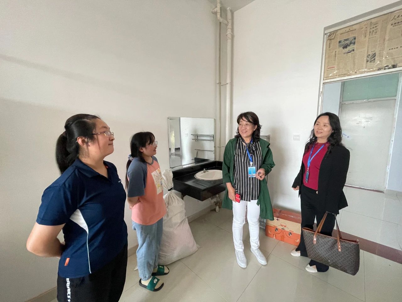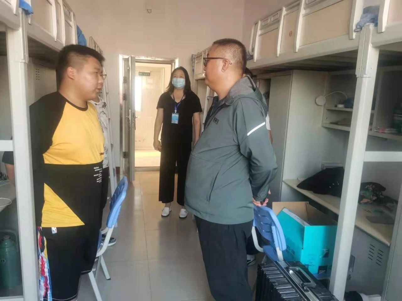 在宿舍里,领导老师们询了问同学们入住情况,解答了一些同学们提出的问题,叮嘱同学们要尽快转换角色、融入大学集体、适应大学生活,做好疫情常态化的防控工作,对未来四年的大学生活乃至人生都有所规划,勉励同学们认真学习,发奋图强。