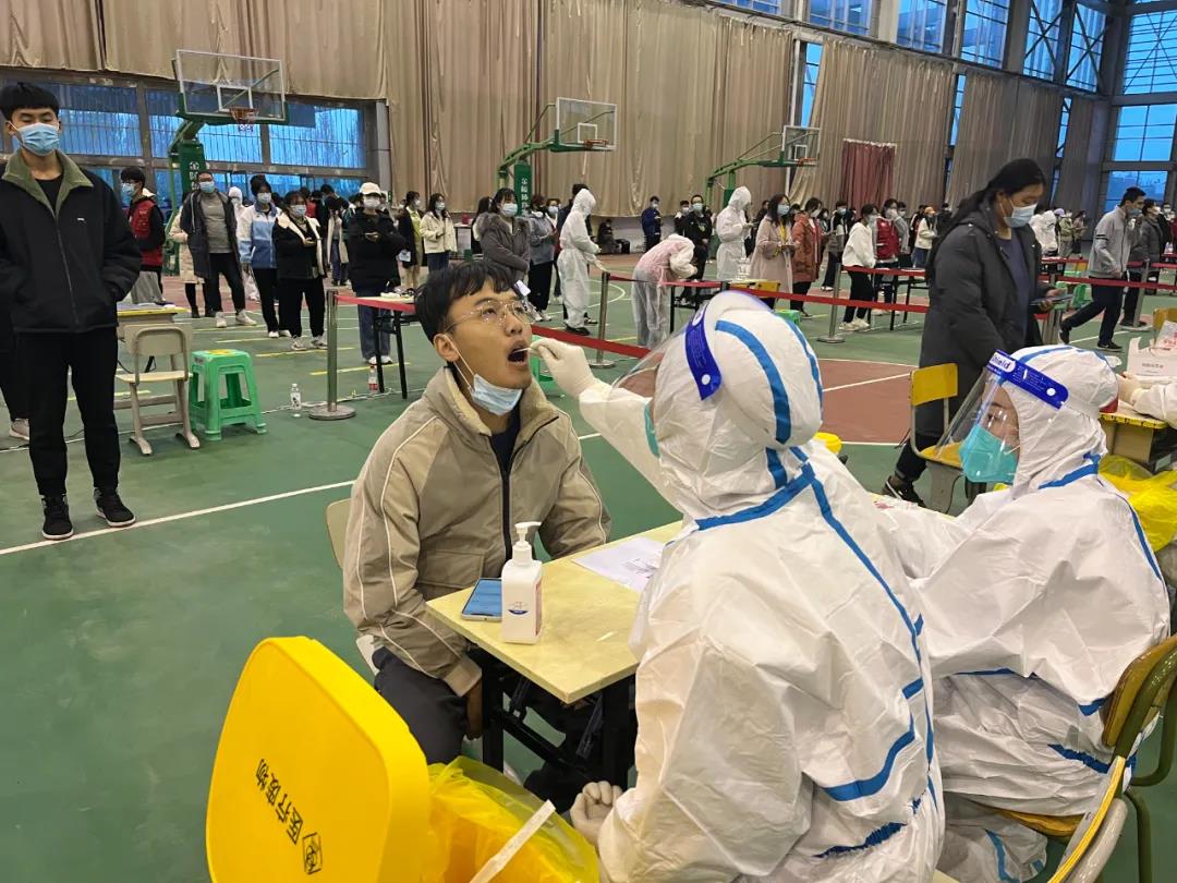 会后,我院领导班子前往现场检查我院学生核酸检测组织工作。