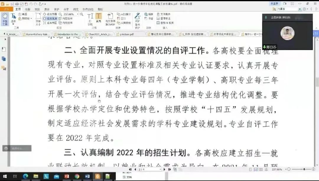 会上,曹永军院长首先对疫情防控工作、师资队伍建设、博士招生情况、研究生工作及毕业生相关工作进行具体部署。副院长那日苏带领全体教师领学内蒙古自治区教育厅《进一步做好专业优化调整工作的通知》、内蒙古师范大学《关于深化本科专业优化调整工作的通知》,同时对线上教学工作产生的问题进行了解答。副书记兼副院长张伟对本硕学生线上座谈会上收集到的问题进行了通报,对学生日常管理及毕业生就业工作进行说明。