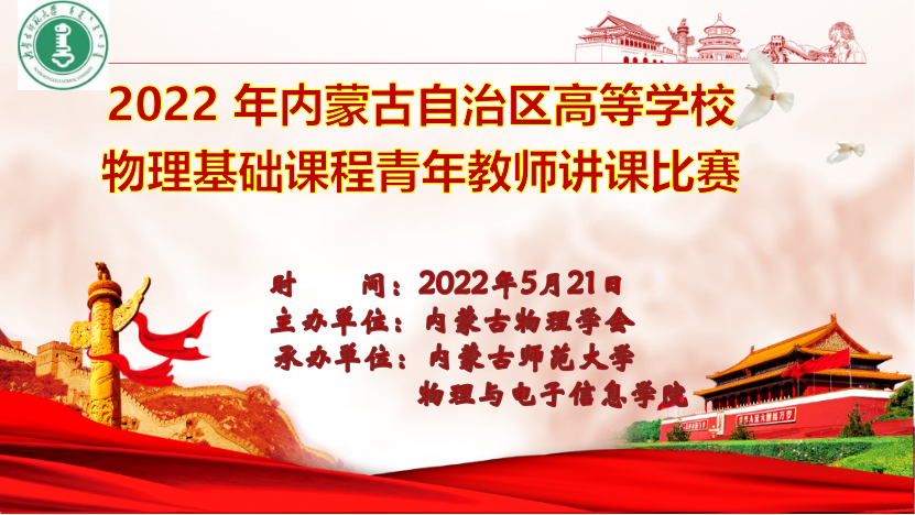 2022年5月21日,由内蒙古自治区物理学会主办、内蒙古师范大学js333线路检测中心承办的内蒙古自治区高等学校物理基础课程青年教师讲课比赛在我校举行。