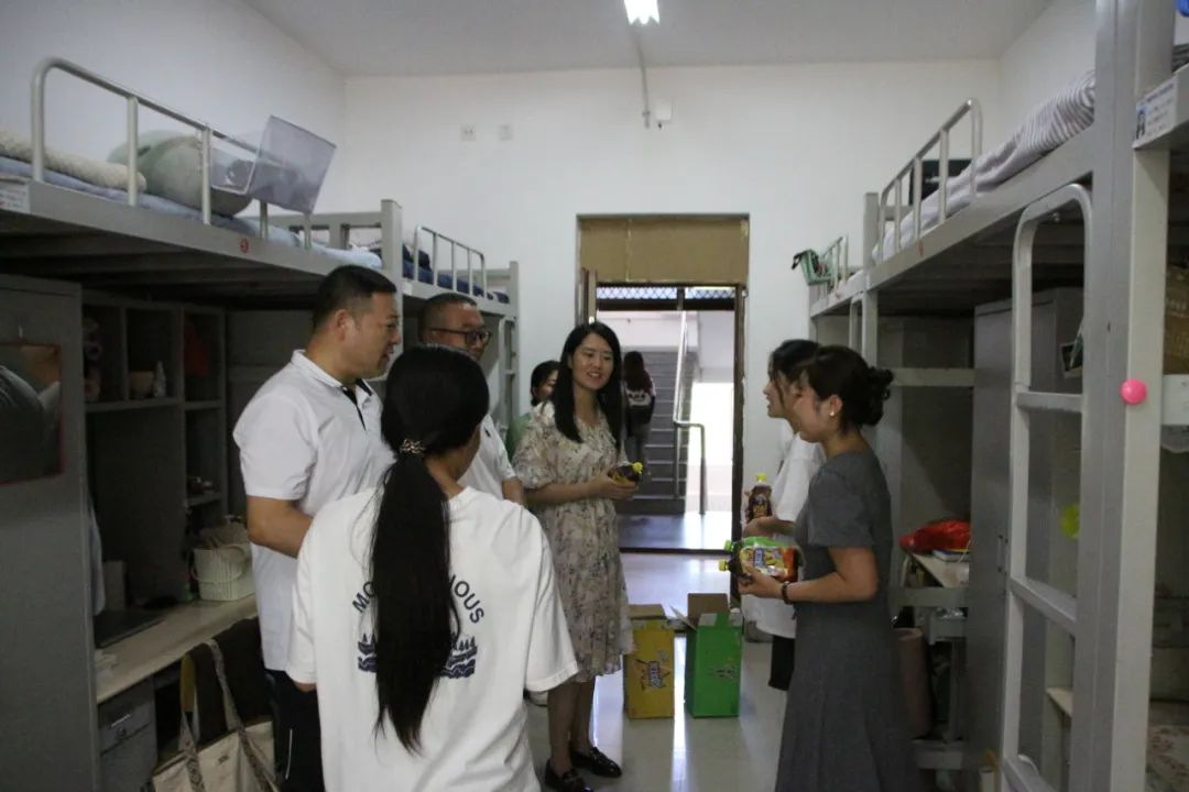 炎炎夏日送清凉,丝丝关心润心田。正值酷暑,物电院领导、老师十分牵挂在炎炎夏日中学习的学生,为充分了解学生返校后的学习与生活状况,鼓舞学生士气,8月5日,学院党委副书记兼副院长张伟、团总支副书记宝力尔、班主任代表2021级物理学蒙班班主任那日苏老师一行前往宿舍楼慰问我院在校学生。