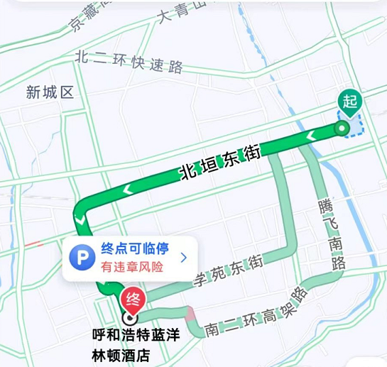 2、从呼和浩特火车东站至蓝洋林顿酒店: