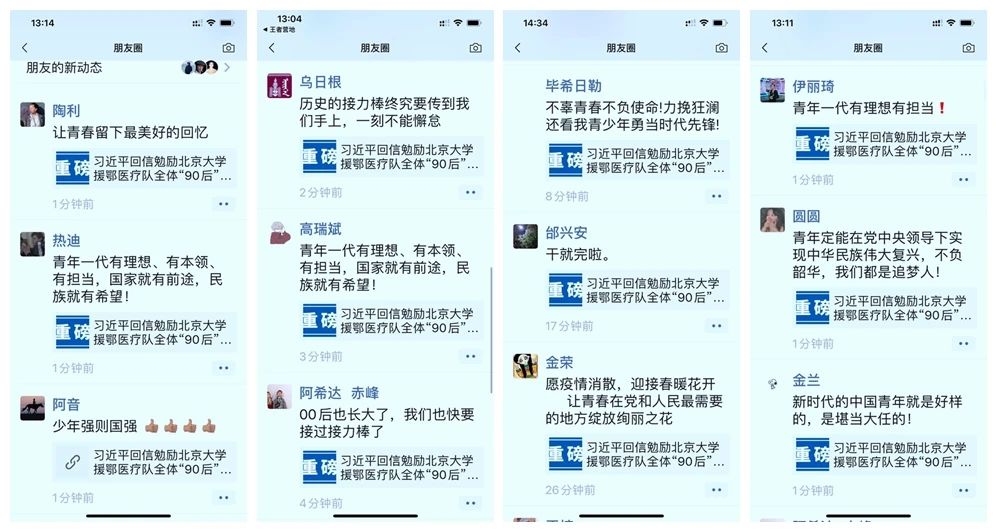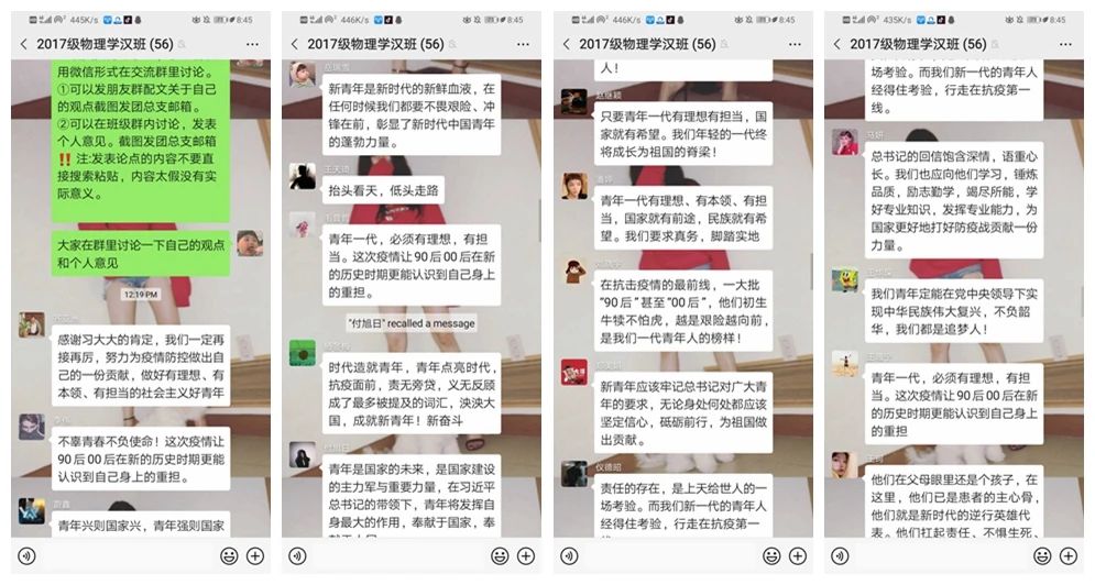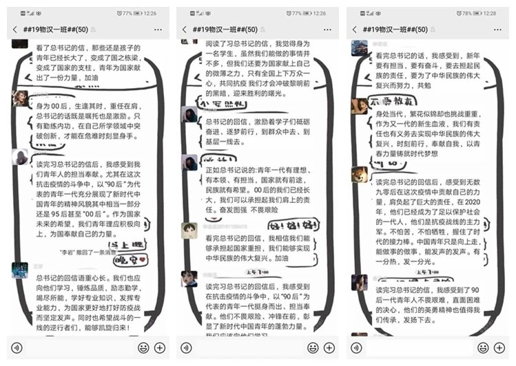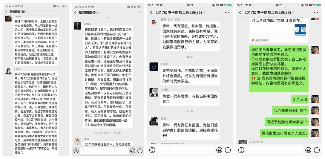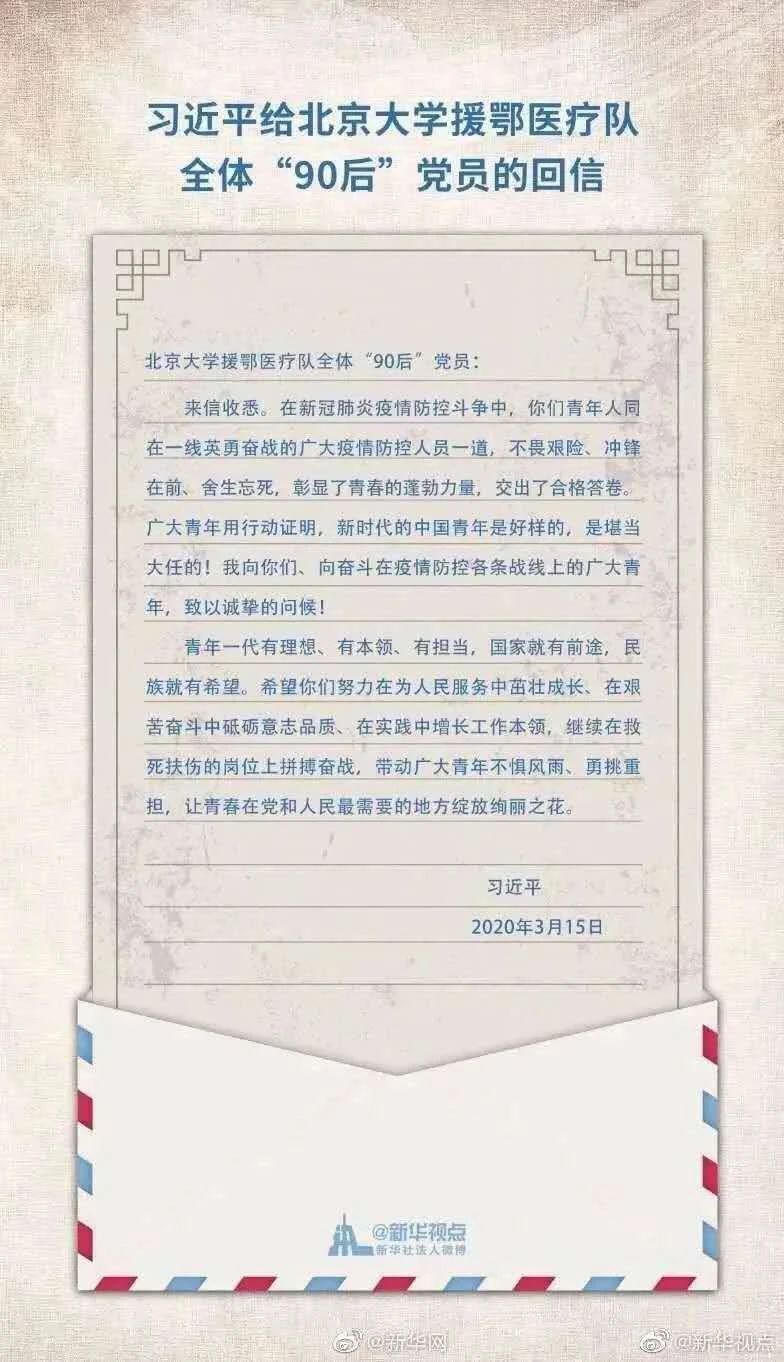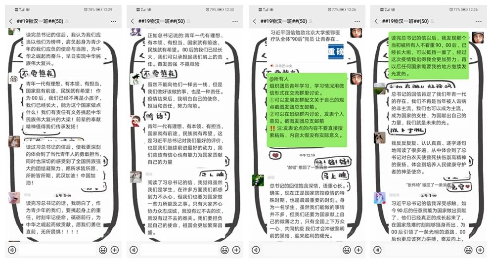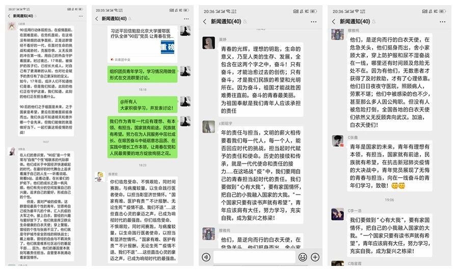 从2003年的非典,到2020年的新冠肺炎,那些躲在长辈身后的幼小生命在不知不觉长大成人,穿上防护服,带好口罩,毫不犹豫地冲向一线,逐渐消失的背影却渐渐高大。习近平总书记在3月15日给北京大学援鄂医疗队全体“90后”党员回信,肯定勉励所有抗战一线的青年工作者们。为树立榜样模范,充分学习青年工作者们在疫情中的表现担当,我院各团支部召开学习习总书记的回信主题团日活动。