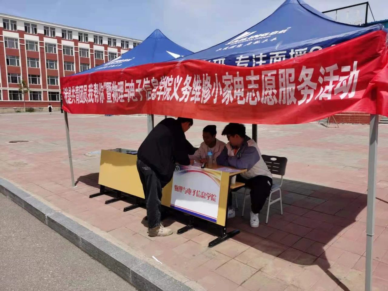 为深入学习贯彻习近平总书记在党史学习教育动员大会上的重要讲话精神和在参加十三届全国人大四次会议内蒙古代表团审议时的重要讲话精神,进一步深化民族团结进步教育,紧紧围绕学史明理、学史增信、学史崇德、学史力行,紧密结合共青团工作和团员青年实际,引导我院同学乐于助人的美好品德,解决我校师生的实际问题,通过实践进一步提升我院同学的动手能力和专业素养,丰富同学们的课余生活,我院志愿服务队于5月15、16日中午在群鸿餐厅西门举办了义务维修家电志愿服务活动。