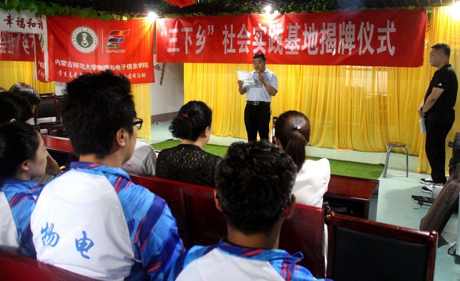 2018年7月16日,我院于清水河县城关镇永安社区居委会举办建立社会实践基地揭牌仪式,城关镇副镇长杜志强同志,js333线路检测中心团总支书记萨其尔老师,志愿服务队指导教师克伦老师,学工办芦嘉琛、苏日、宋鑫伟老师与物电院志愿服务队队员、居委会工作人员参加仪式,仪式由城关镇永安社区居民委员会党委书记闫鹏旭同志主持。
