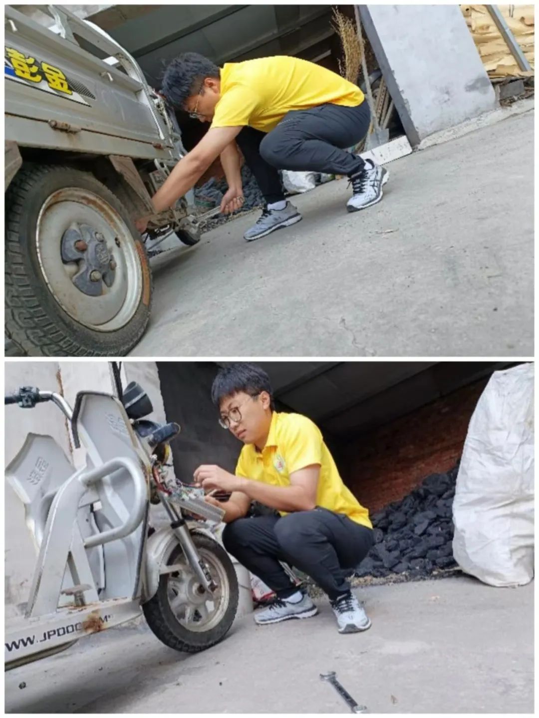 2021级专硕班的李宏文在元宝山区公格营子村进行了志愿服务活动。服务过程中,他运用自己在学校学习的理论知识帮助村民维修农机和家电、整理仓库等。通过这次活动,他说:“能够用学到的知识和本领去帮助家乡,助力乡村,倍感荣幸,这是一件很令人骄傲和开心的事情。同时,也提高了我的沟通能力、逻辑思维能力,加深了我对理论知识的掌握。”