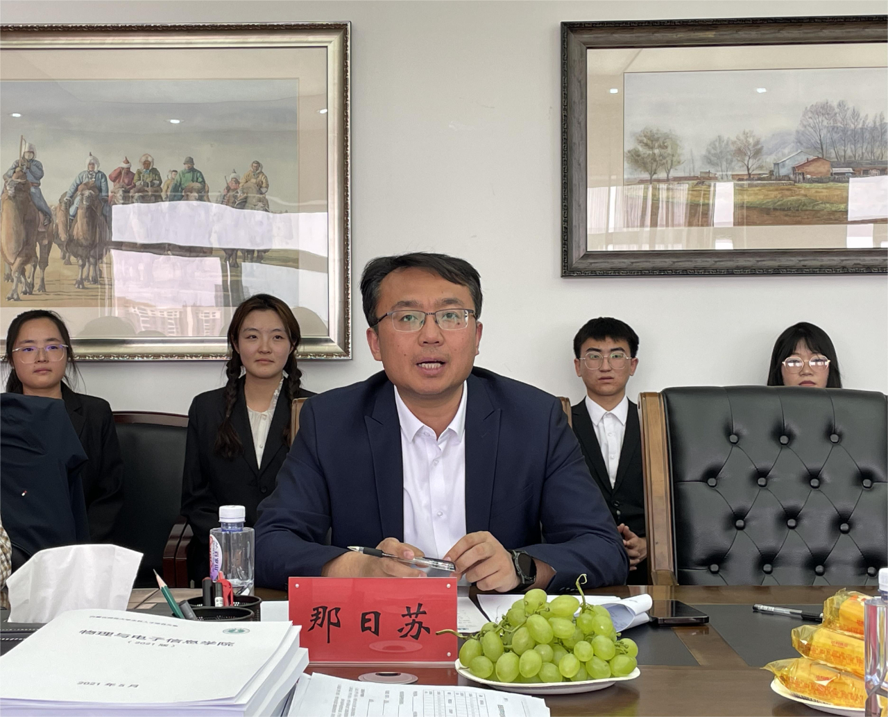 专家组见面会在赛罕校区田楼802会议室举行。教务处副处长银福成,教学研究科侯舒欣、马旭阳出席,党委书记刘美玲,副院长那日苏,以及学院各系部主要负责人、师范类认证执笔人、物理系教师代表参加会议。见面会由我院党委副书记、副院长张伟主持。